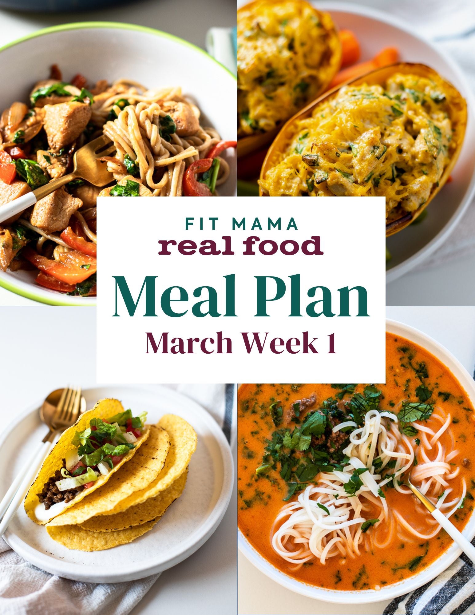 Grab the March Week 1 Meal Plan! Included are 4 dinners that are all healthy, balanced, and kid-friendly recipes that will offer variety and color all throughout the week. The recipes focus on whole foods and leave out overly processed ingredients.